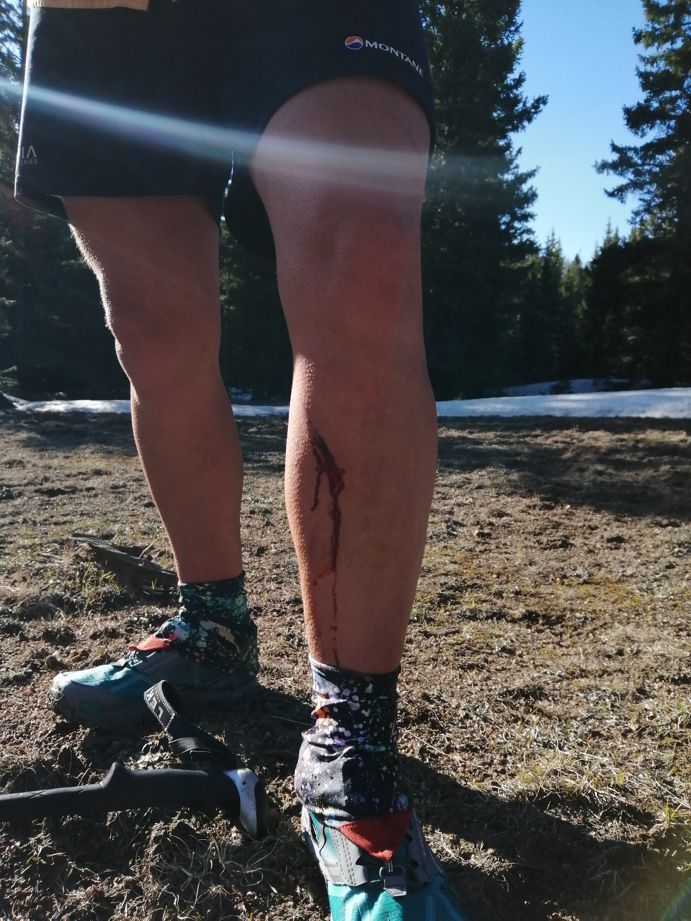 I now have a gammy, possibly infected leg wound, which Cliff kindly helped me dress with some antibiotic cream and a gauze she sensibly carries.