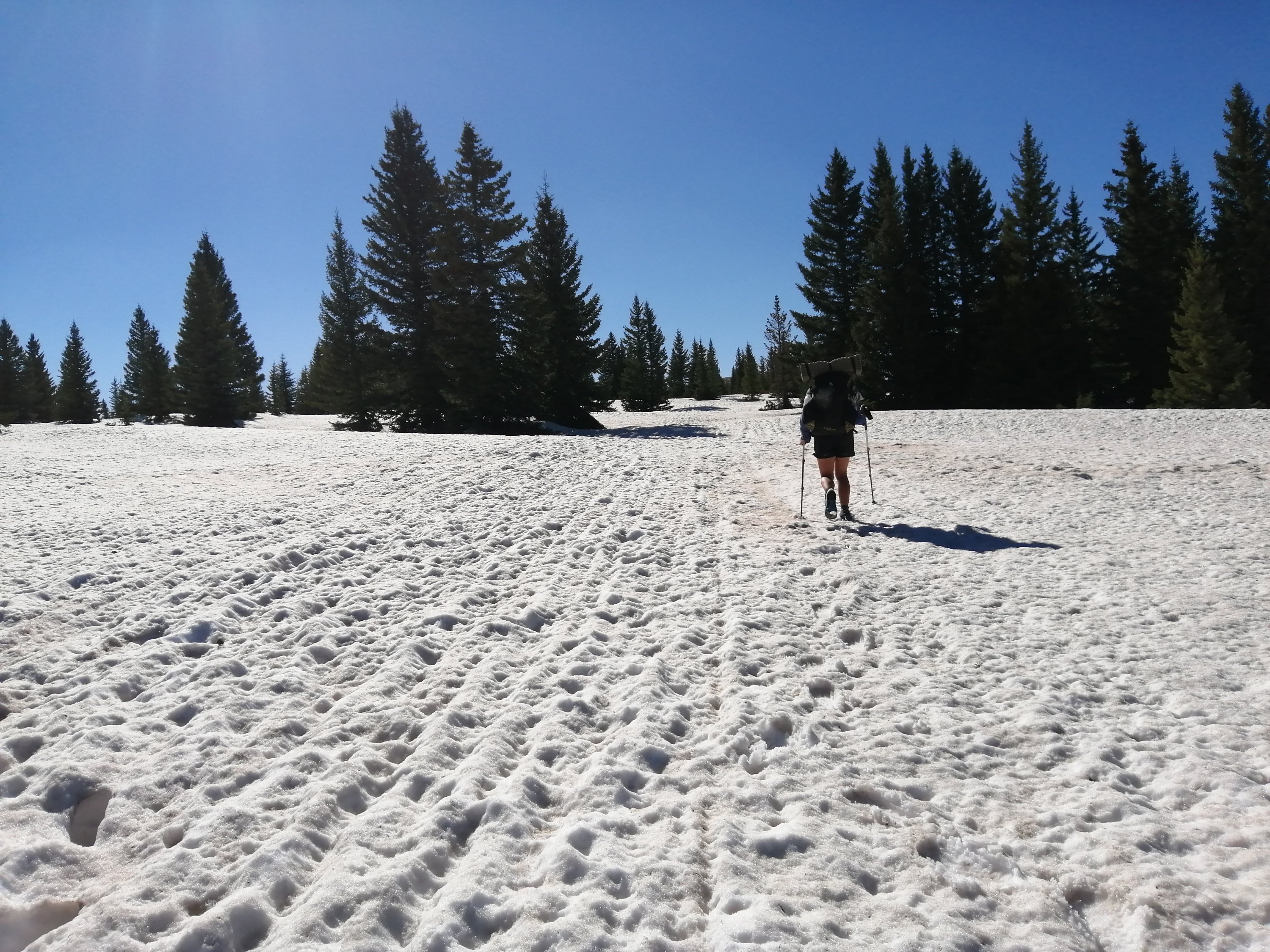 Tired and totally over snow and postholing we stumbled upon the border of Colorado and New Mexico.