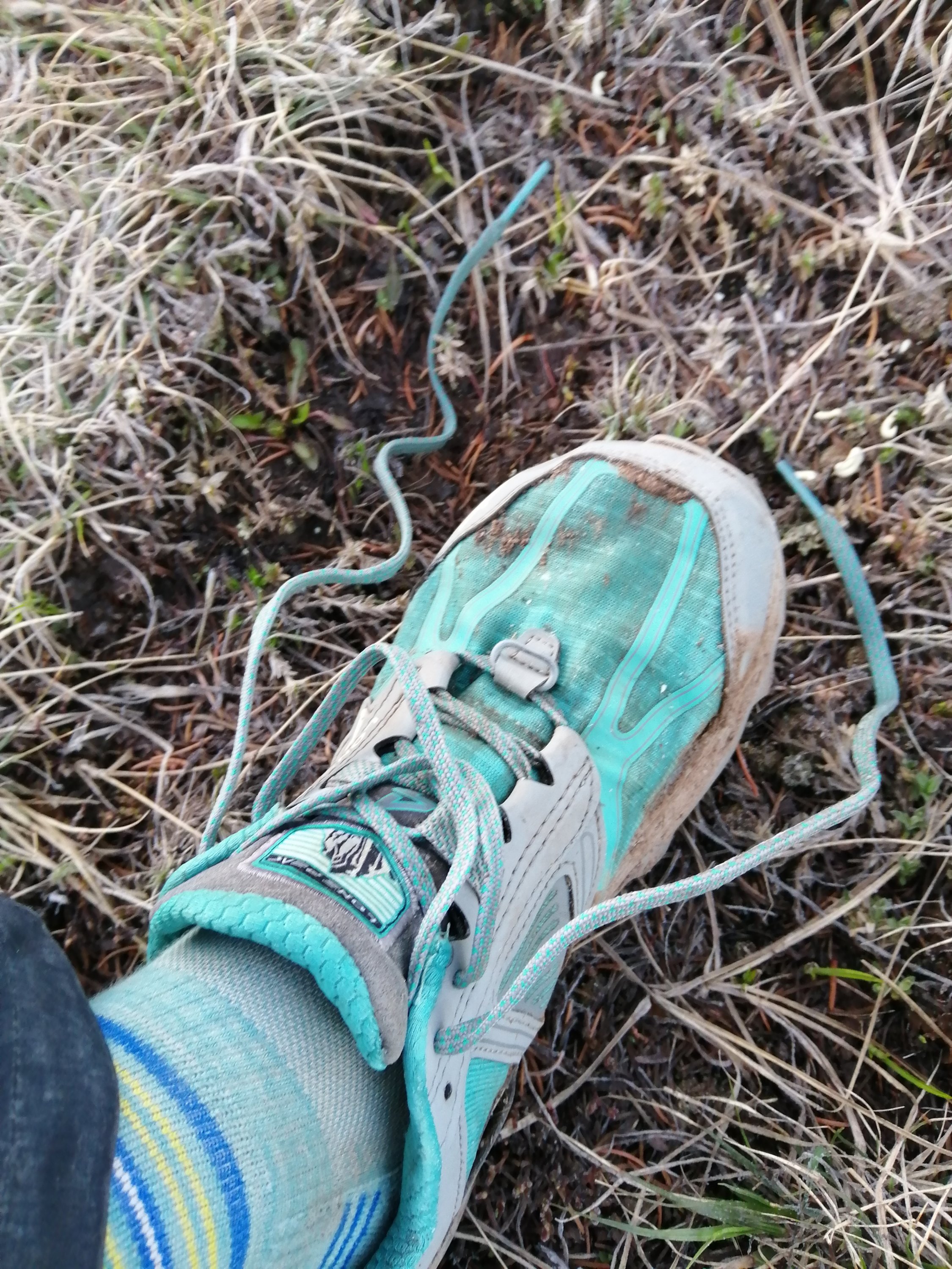 My clever idea of laying our soaked socks, inner soles and gaiters out under our sleeping pad overnight to be dried by our body warmth was totally ineffective.