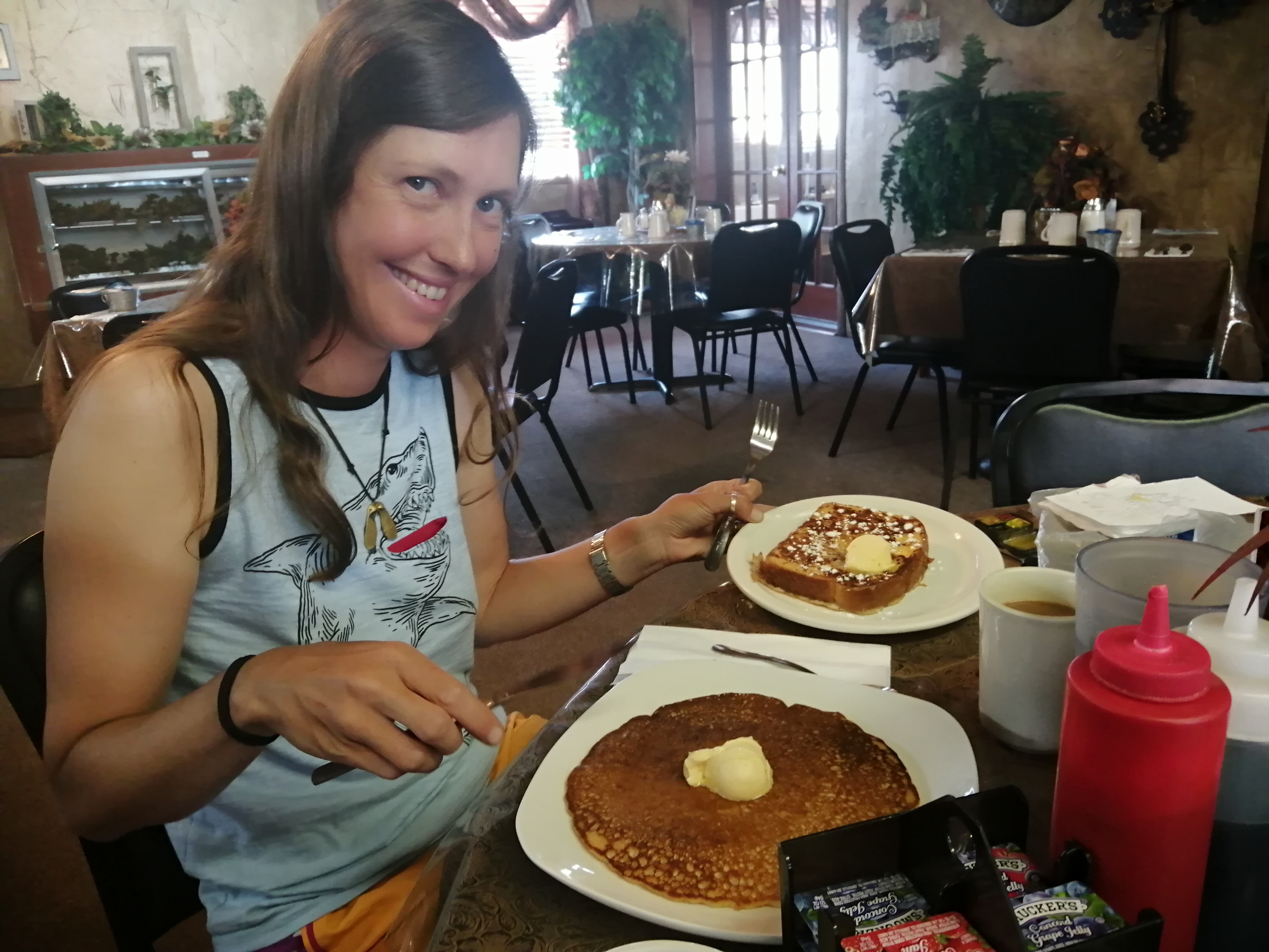 We went back to Jan’s for breakfast. The entire meal was a very slight move up the beige spectrum, from omelette to hash brown to toast. Snakes ordered pancakes then panic ordered French toast as well. As it landed she said “what have I done to myself” then proceeded to eat the entire thing whithout further hesitation.