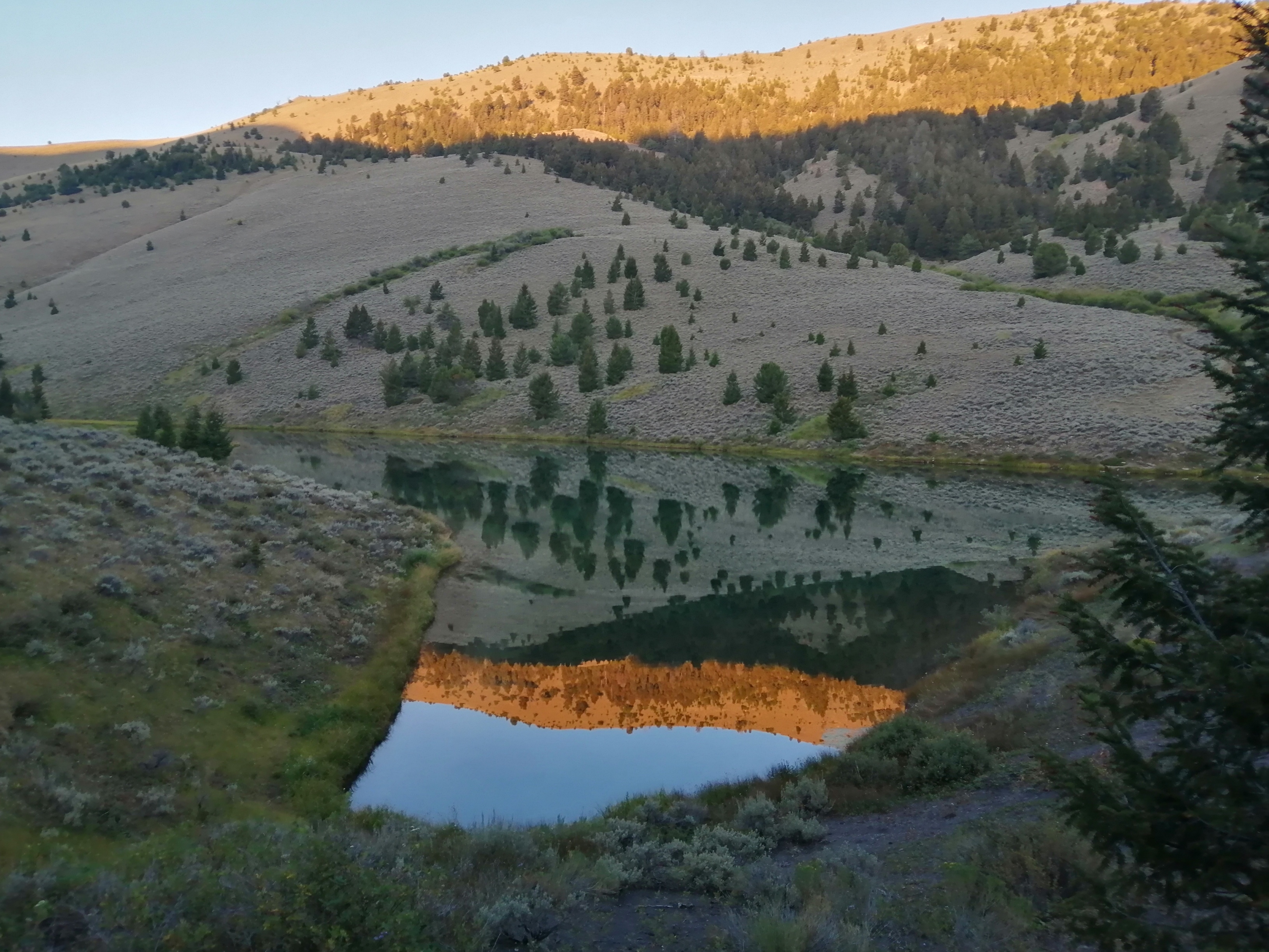 I really enjoyed the morning walk, it was gently rising up and down through small patches of sage brush meadow lines with woodland. We’re seeing some different pine trees now, and they are reminiscent to me of the oak, which is my favourite and rings of home.