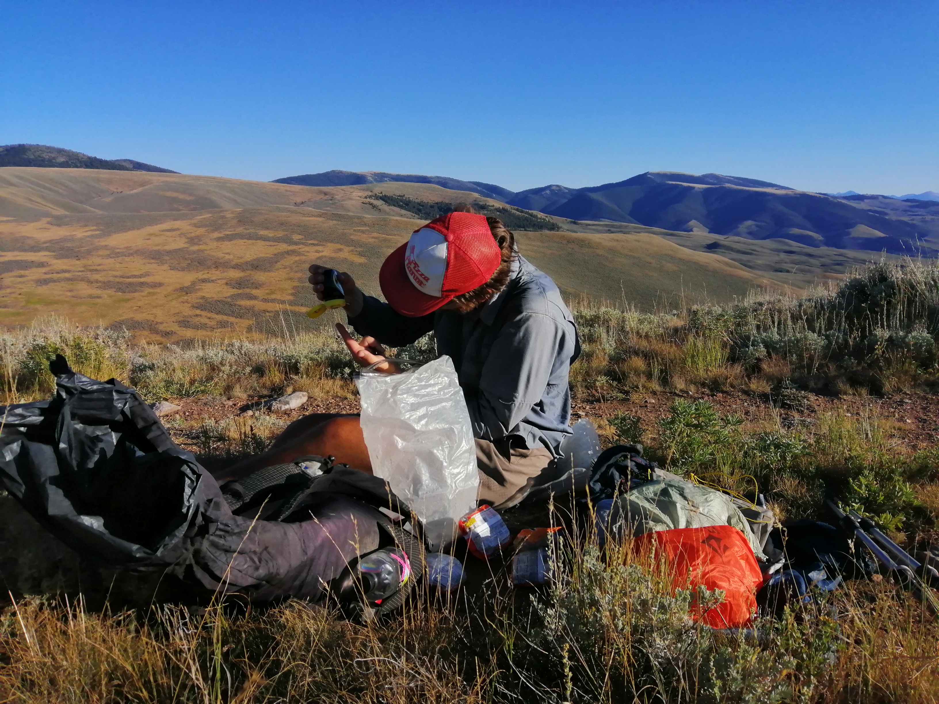 We paused for a cup of Flavoured coffee (thanks Claire) with 8.6 miles to the trailhead and the road into Leadore. Spooky joined us and we merged on plans to camp at the trailhead.
