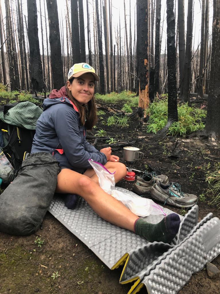 The rain did not hold off and a drizzle lingered for some time. We executed the speediest dinner in the middle of an unattractive burn area.