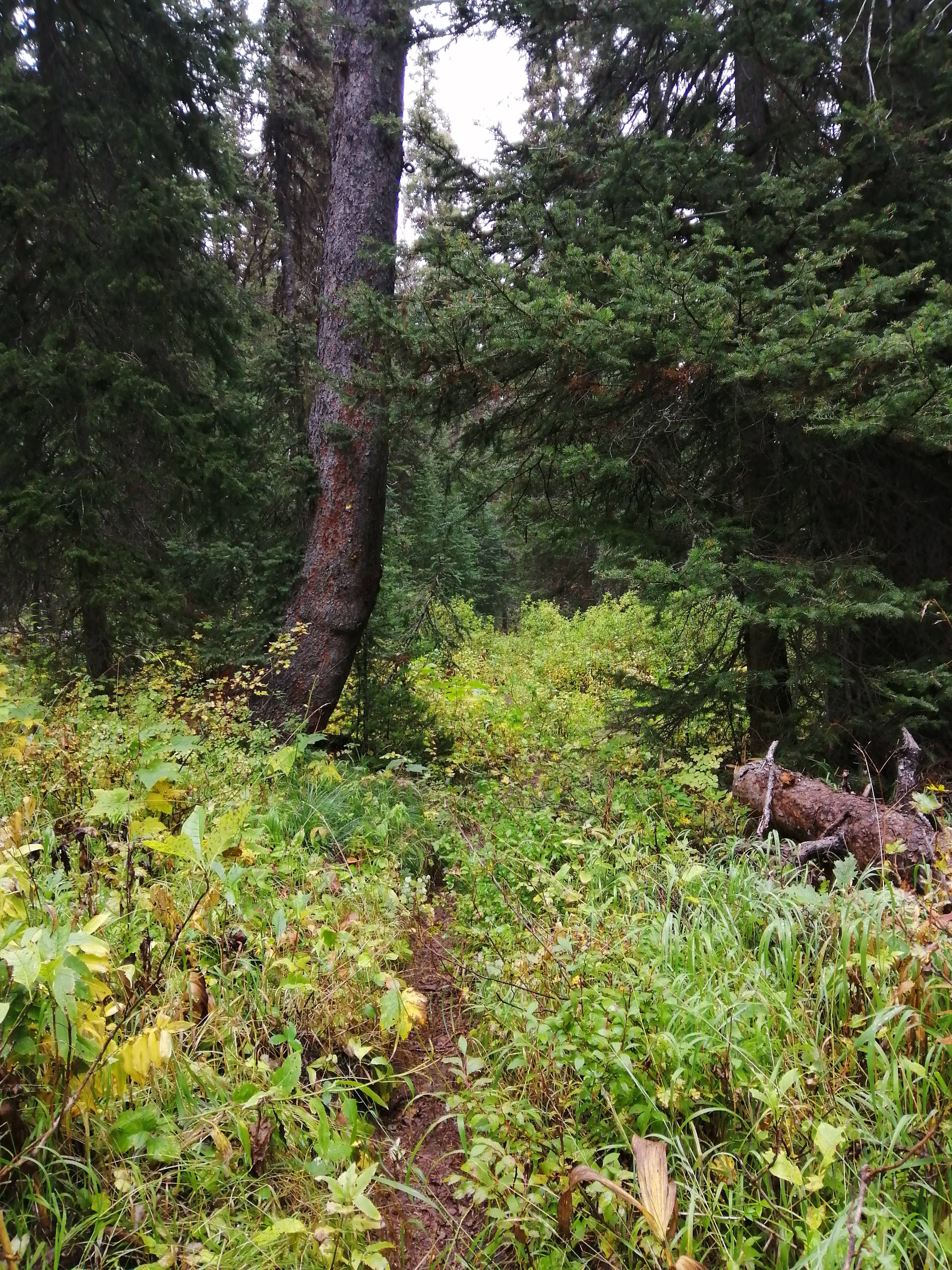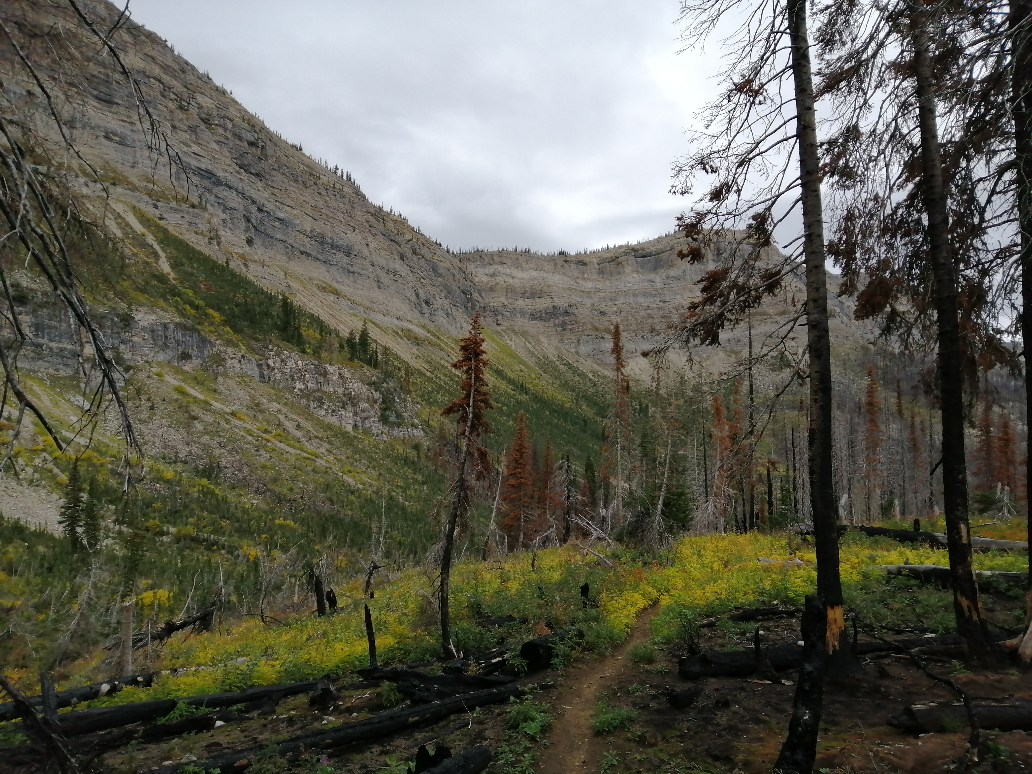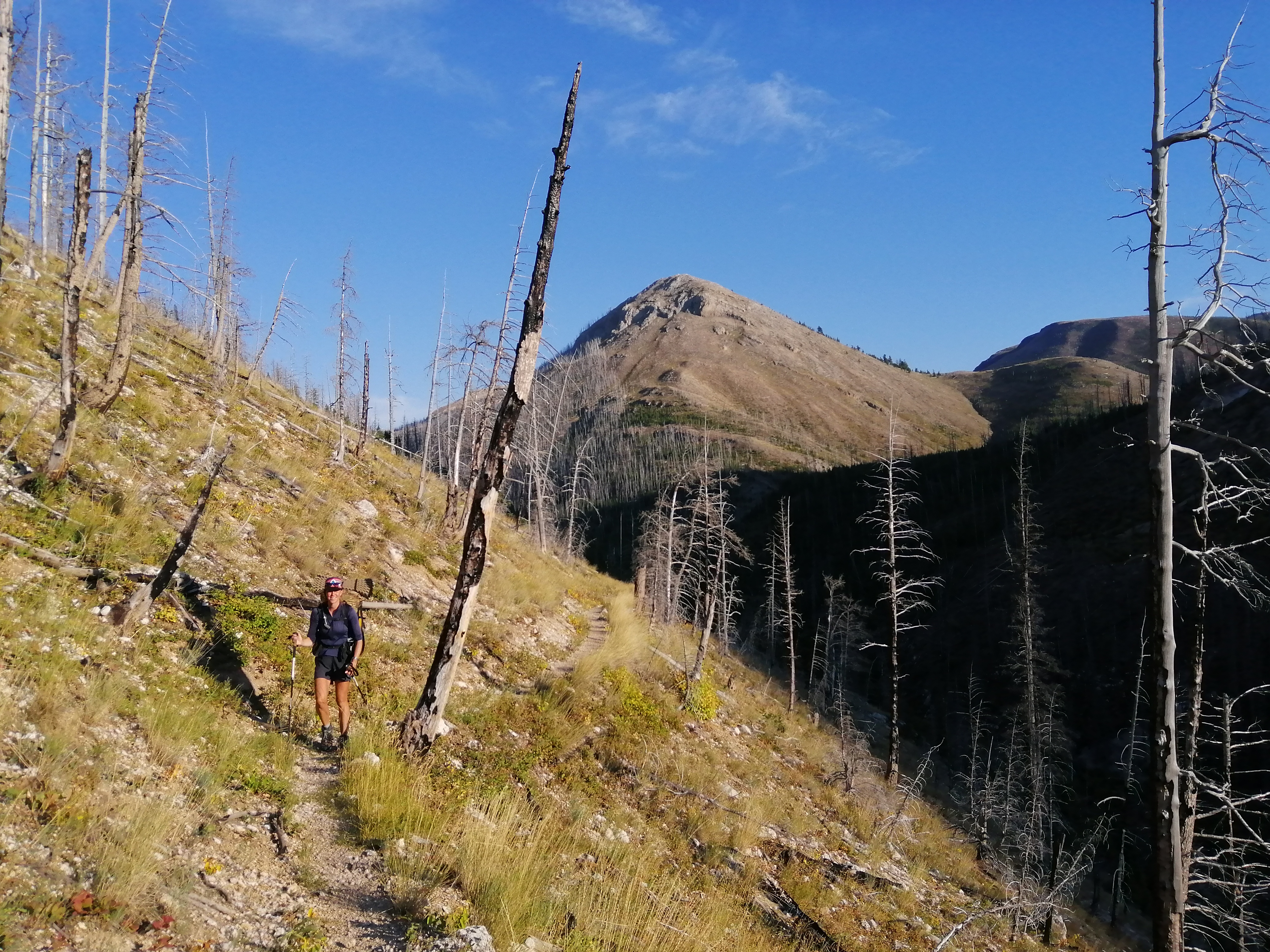 A short stretch of trail in woodland, into the infamous ‘Bob Marshall Wilderness’ before the desolation of barren, dead trees filled our views once again.