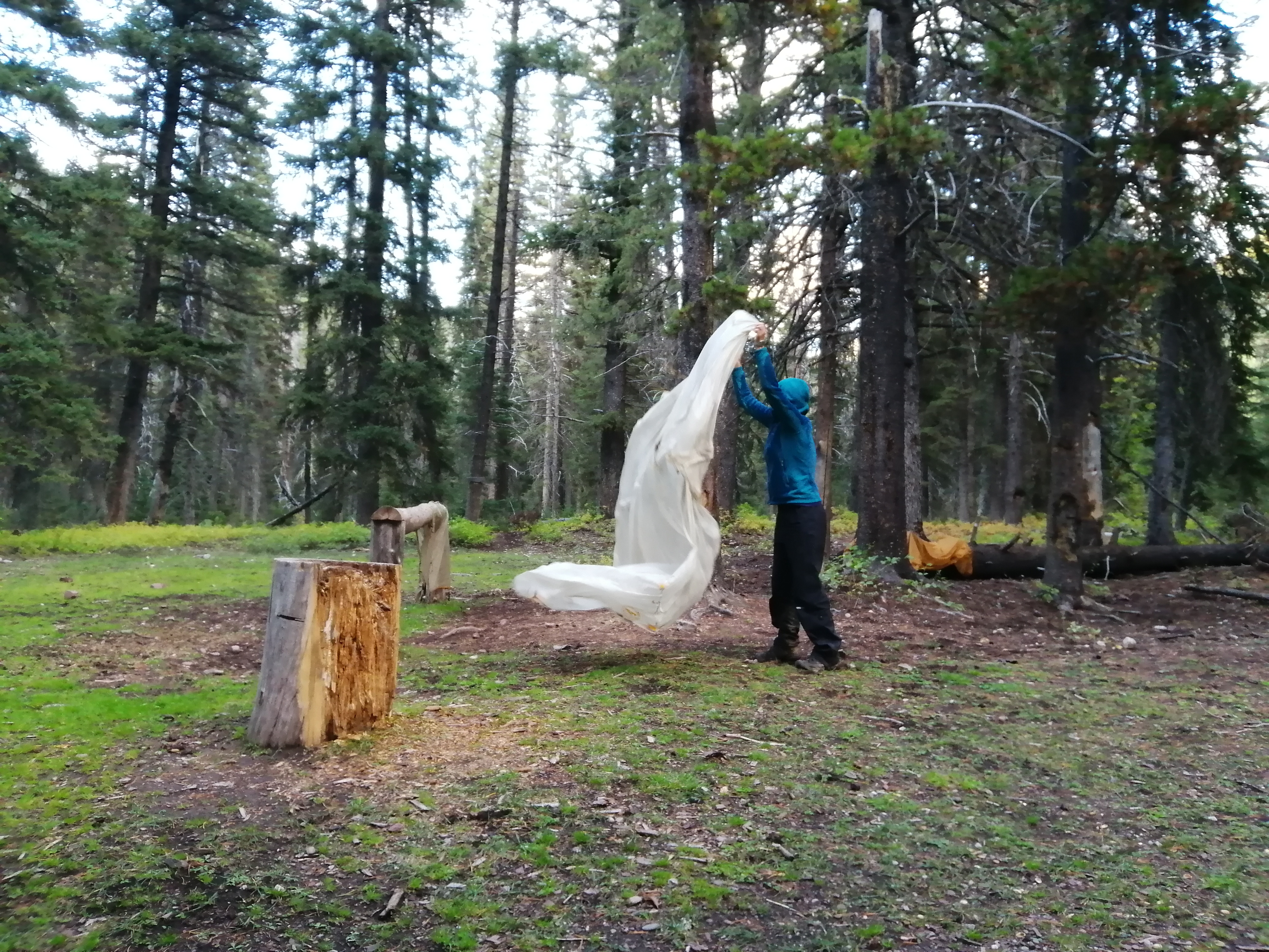 We chatted a while then hung food on a pre-set up rope, and set up camp, just as it began to rain. Sleeping to the sound of rain, when my food is hung on a proper hang and I have 6 additional people around me and can see the light of the fire through the tent, is perfection.