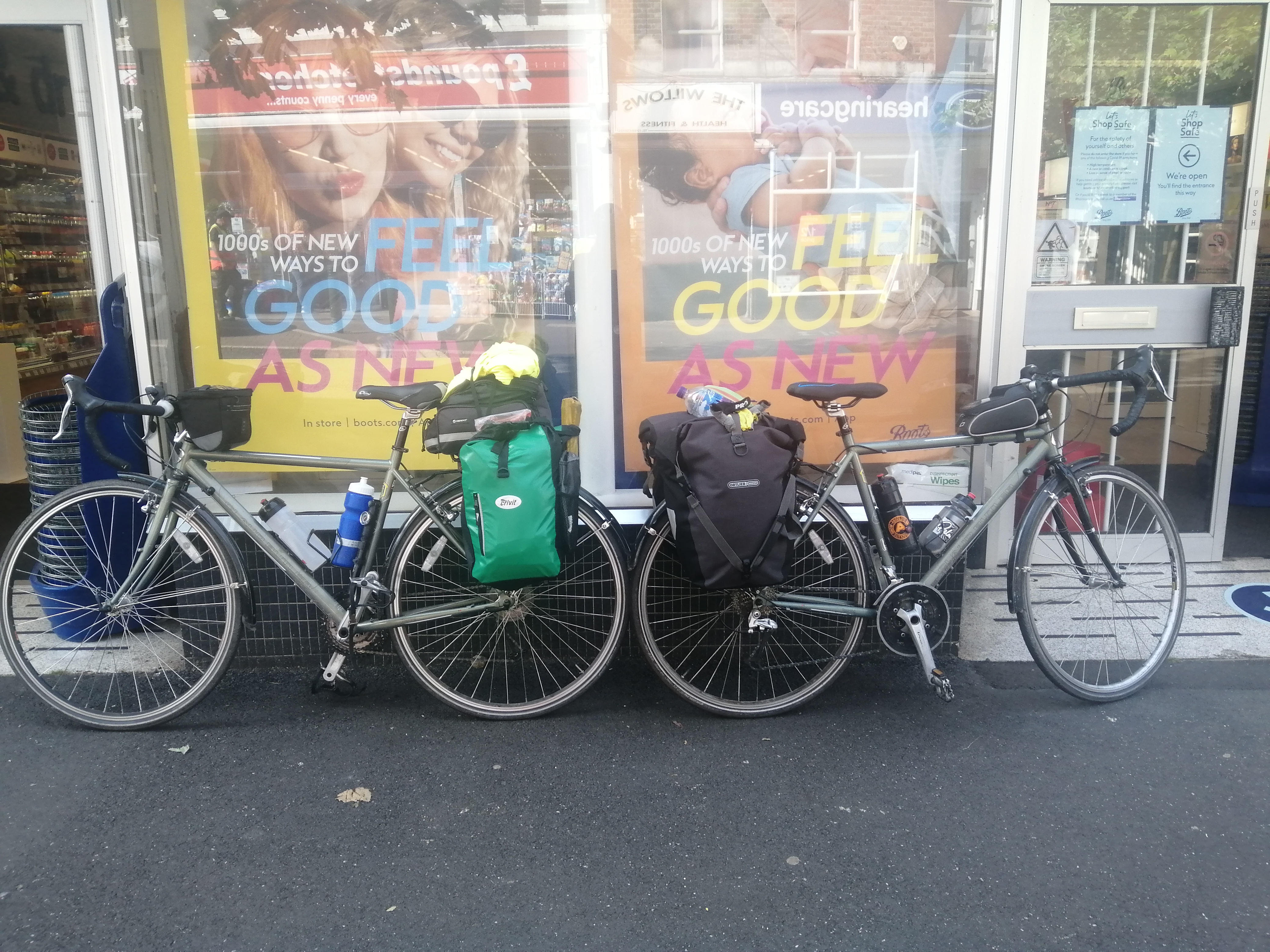 We took a break by the river and were passed by two monster bikes. They looked flat pack resembling Bromptons, battery-powered, with wheels the width of my face, storming down the canal path.