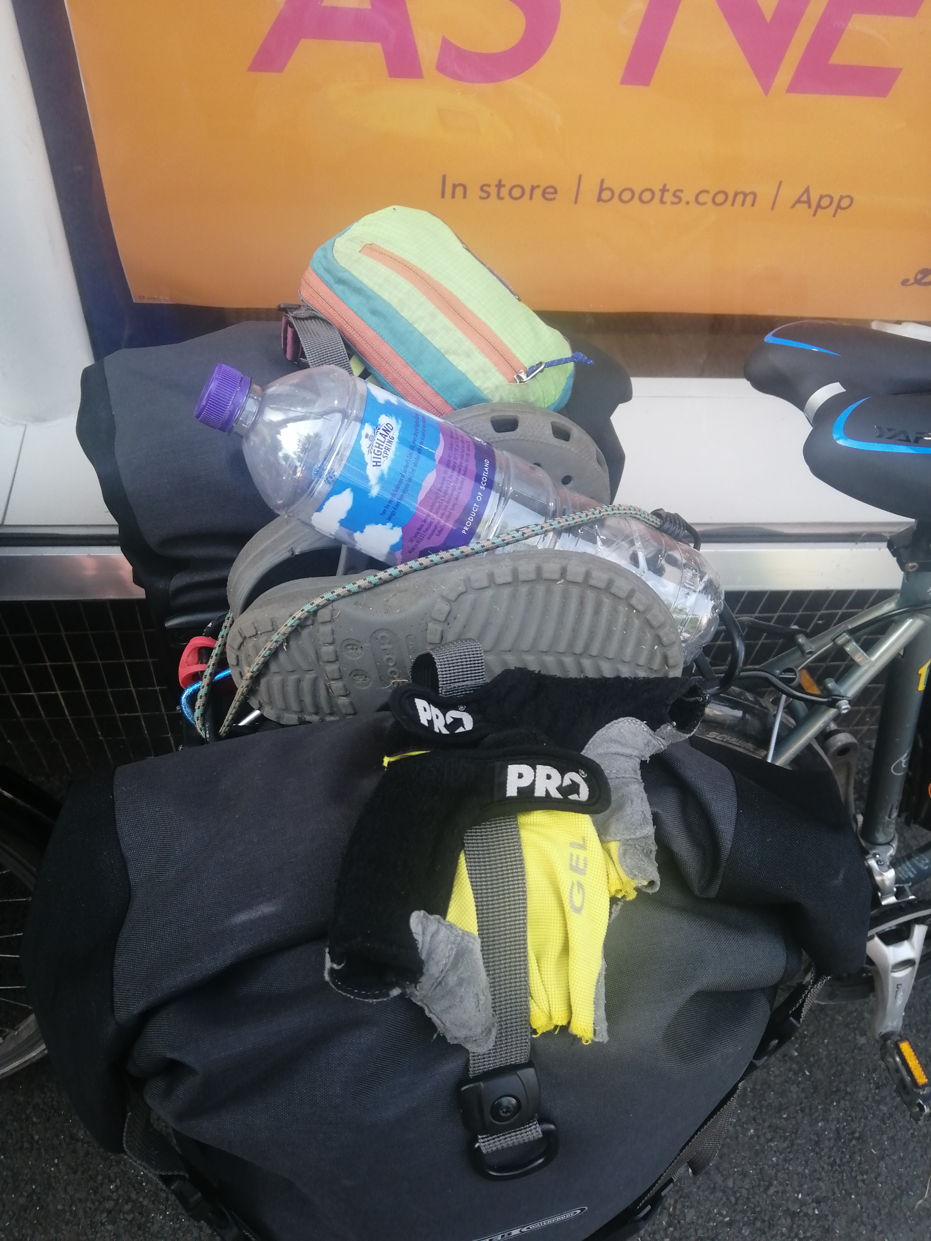 Packing to leave is becoming more efficient and just like the absolute thrill I get when everything fits into my bag, I feel this too with my new swanky paniers. We both just carry 2 rear paniers, mine are 20 litres each and Shelley’s about 15 each. Hers are always expertly packed and immaculately square. Mine generally have a load of crap hanging off them.