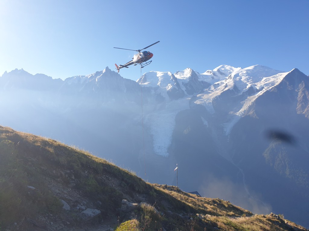 After a short pause here we we’re heading off back to the trail when a helicopter appeared overhead to drop a package of goods to the tiny refuge. Quite a sight, which really awoke the excited eleven year old boy in Snake Legs. We continued up to refuge Brevant where water is sold at €3.50 for 500ml. No natural sources were flowing and only residents of the refuges were entitled to their potable free water. Not fair. Very expensive. Snakes kept exclaiming (throughout the day) it was her human right to drink water.