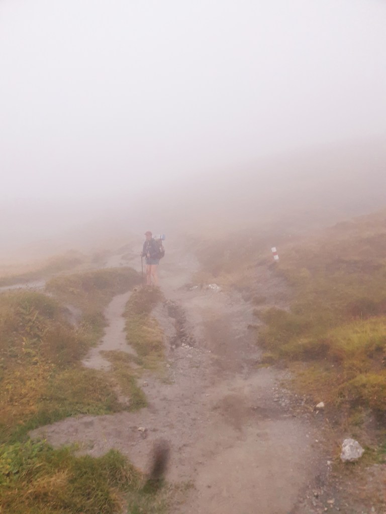 After a couple of hours of a morning distinctly reminiscent of a wet Welsh mountain day, the clouds parted and we caught a glimpse of the spectacular valley below. Just after 8am, as usual, we encountered the first wave of hikers just leaving their hut. But today, our greetings would be in Italian. Snakes walks behind me as she finds the constant ‘saying hello’ to people extremely boring. I lost count of how many ‘Ciao’s’ came out of my mouth in the fateful hour between 8 and 9.