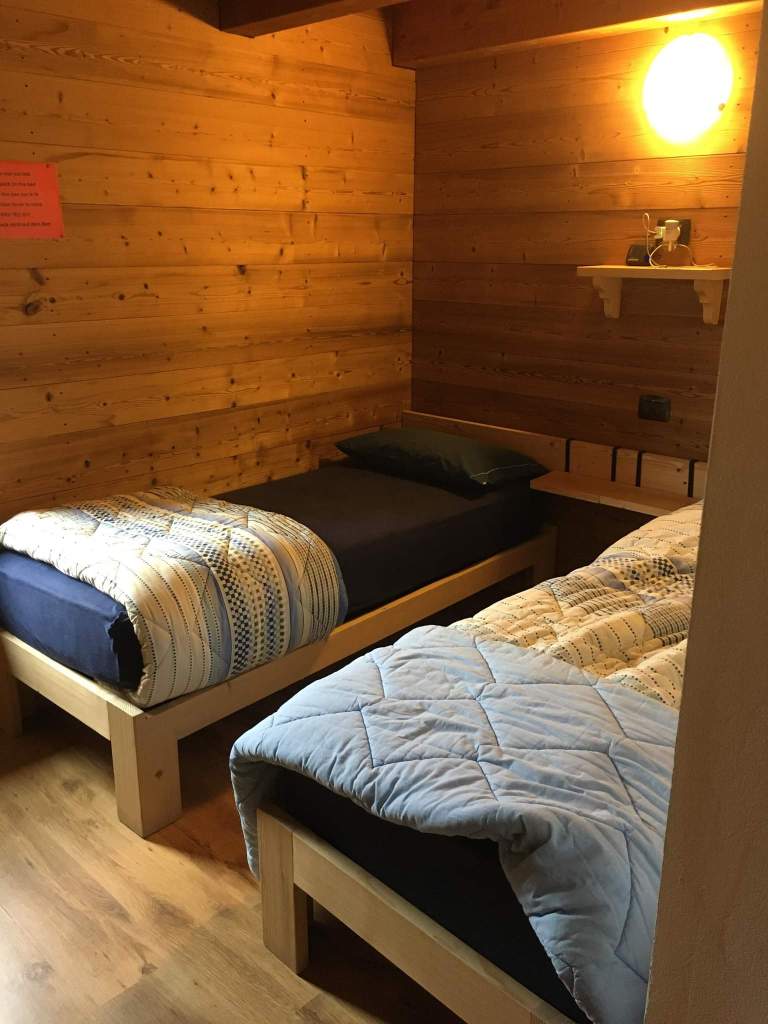 We couldn’t check in until 4 so we chose to wait with our good pal, Aperol. We were stood at the door at 4pm on the dot so as to choose the least shitty beds in what we’d imagined to be a room full of bed bug ridden bunks, but when shown to our impeccably clean room, Snakes was almost as excited about the fact that we had a private room, as she was to see the helicopter drop supplies to the refuge on day 1. It was a stupendous moment. We made it to the showers first too, trying our best not to disgrace the immaculate bathroom.