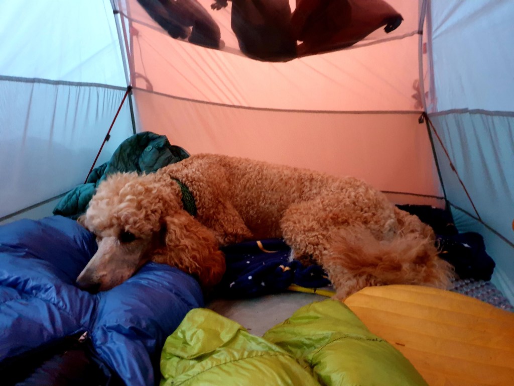 Winnie was starting to flag due to the heat, and because we’d topped up her bags with her resupply. Aren’t we clever though? Making her carry all her things? She enjoyed a shady rest and some jerkey.