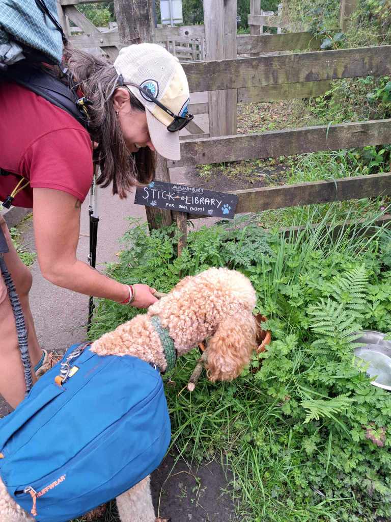 The first came in the form of a little hamlet, nestled away and surrounded by rolling hills and a derelict castle. One of those spots that when you enter on foot, you can’t imagine anyone gets there any other way. One fine homeowner had left flapjacks, blister kits and re-routed their tap, leaving water and a pot of sticks out for dogs.