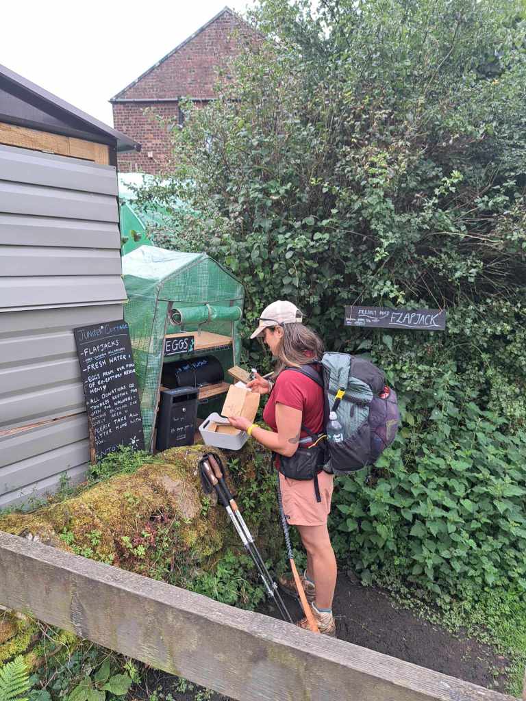 By midmorning, and with ample time for our snack station number 1 flapjacks to digest, we arrived at Gilsland. There, we hunted out ‘House of Meg’ tea room and were immediately recognised as the overly-organised walkers who sent a resupply package of dog food over a week ago.