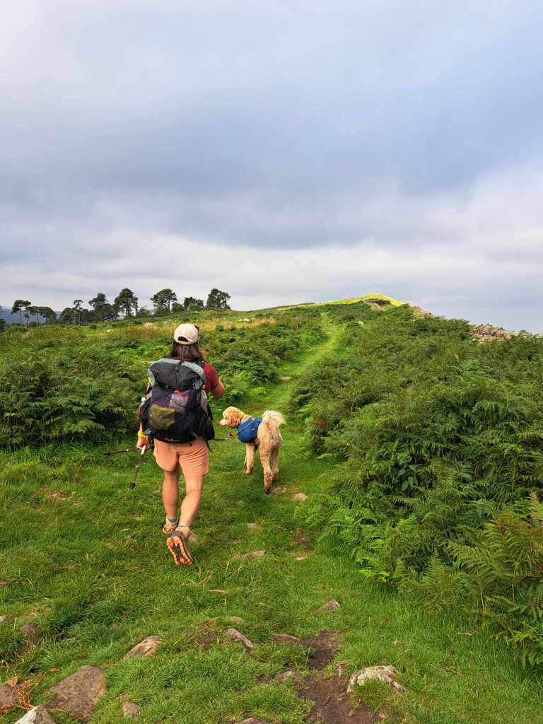 More green, undulating, wall-laden English beauty. It was quintessential landscape. Hardly surprising that we were crossing paths with predominantly international walkers, this trail has a universal draw. Rarely did we meet anyone going the same way as us. Today we saw the most walkers of any day- only one other with a dog. One friendly man remarked “Oh you’re not making him carry all your gear are you?” Oh how we did laugh.