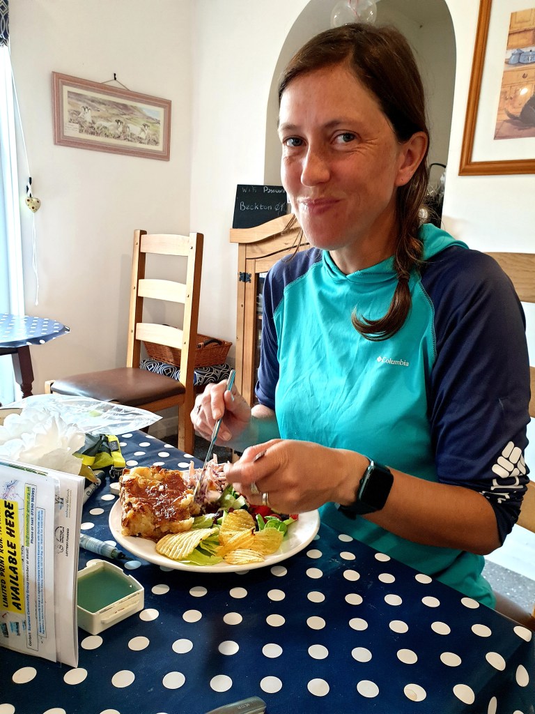 We bypassed our planned stop on account of it only being 3pm. The walking was flat and fast and we were being powered by pastie and chips.