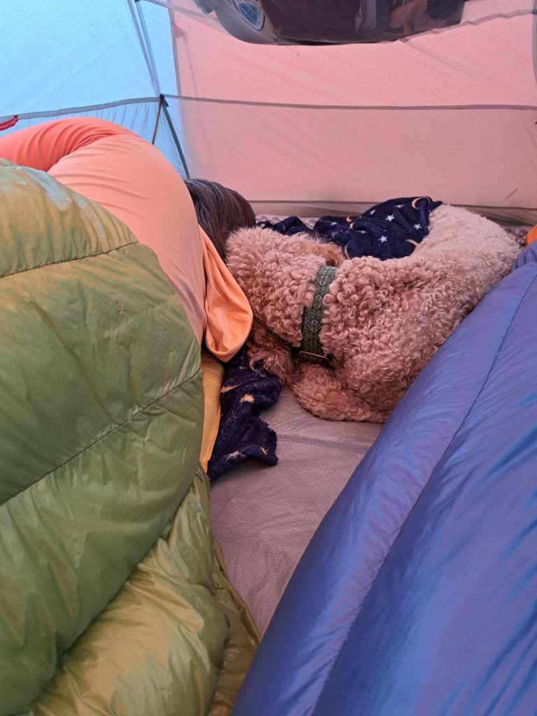 Poor Flat Eric just pulled her first 20 miler. The only excuse she needed to be allowed inside the tent, again, tonight.