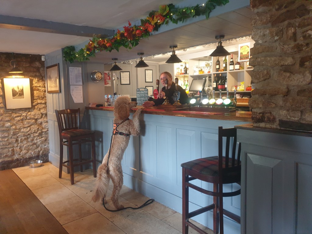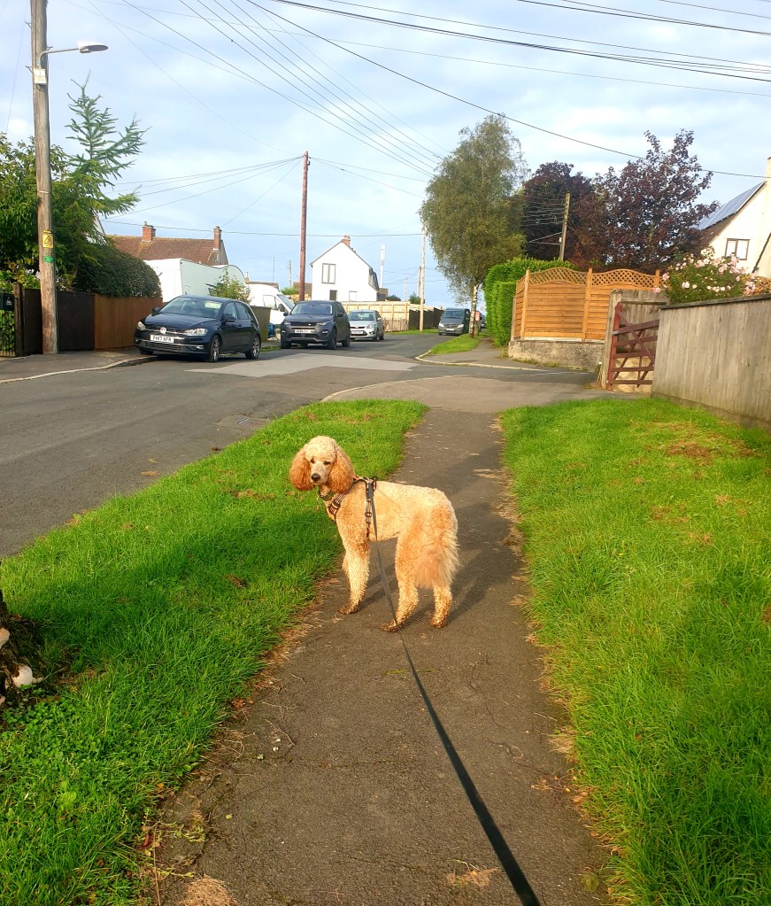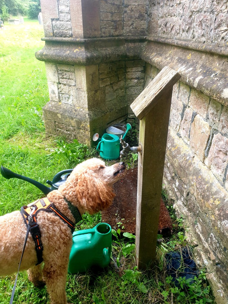Winnie replenished herself after the descent from Maes Knoll courtesy of the church tap at Norton Malreward. Before long we crossed back over the river Chew and I made a much needed cup of tea. Unfortunately (for me) I’d dropped Winnie’s snack pouch a ways back, so she had most of the cheese out of my sandwich.