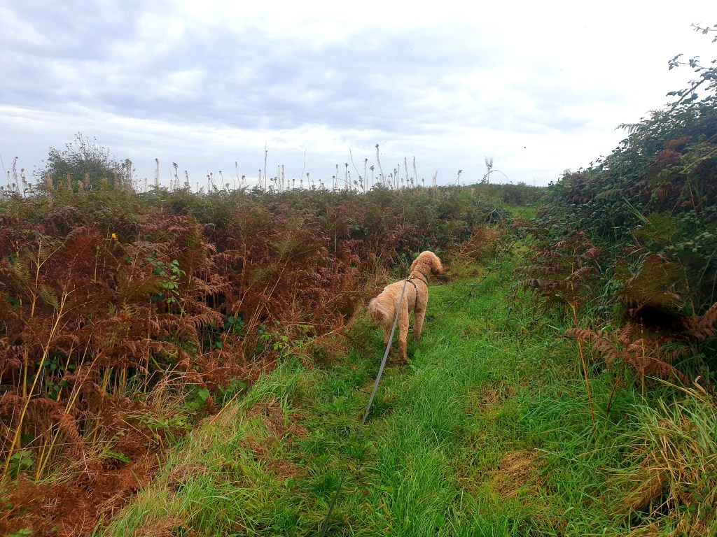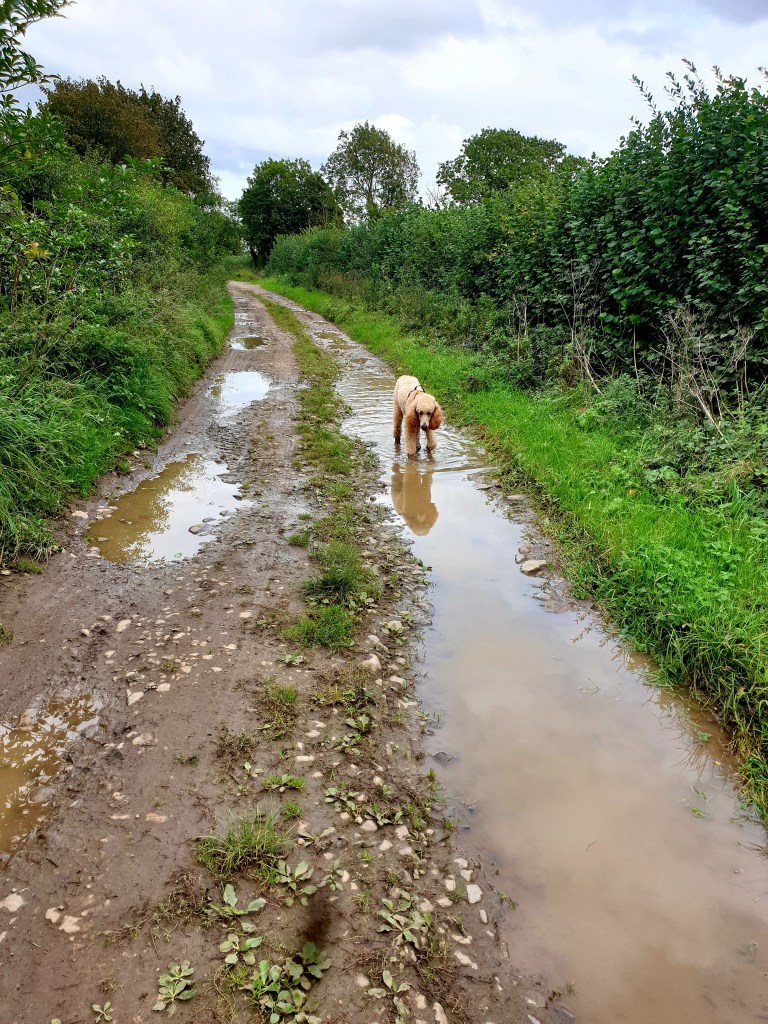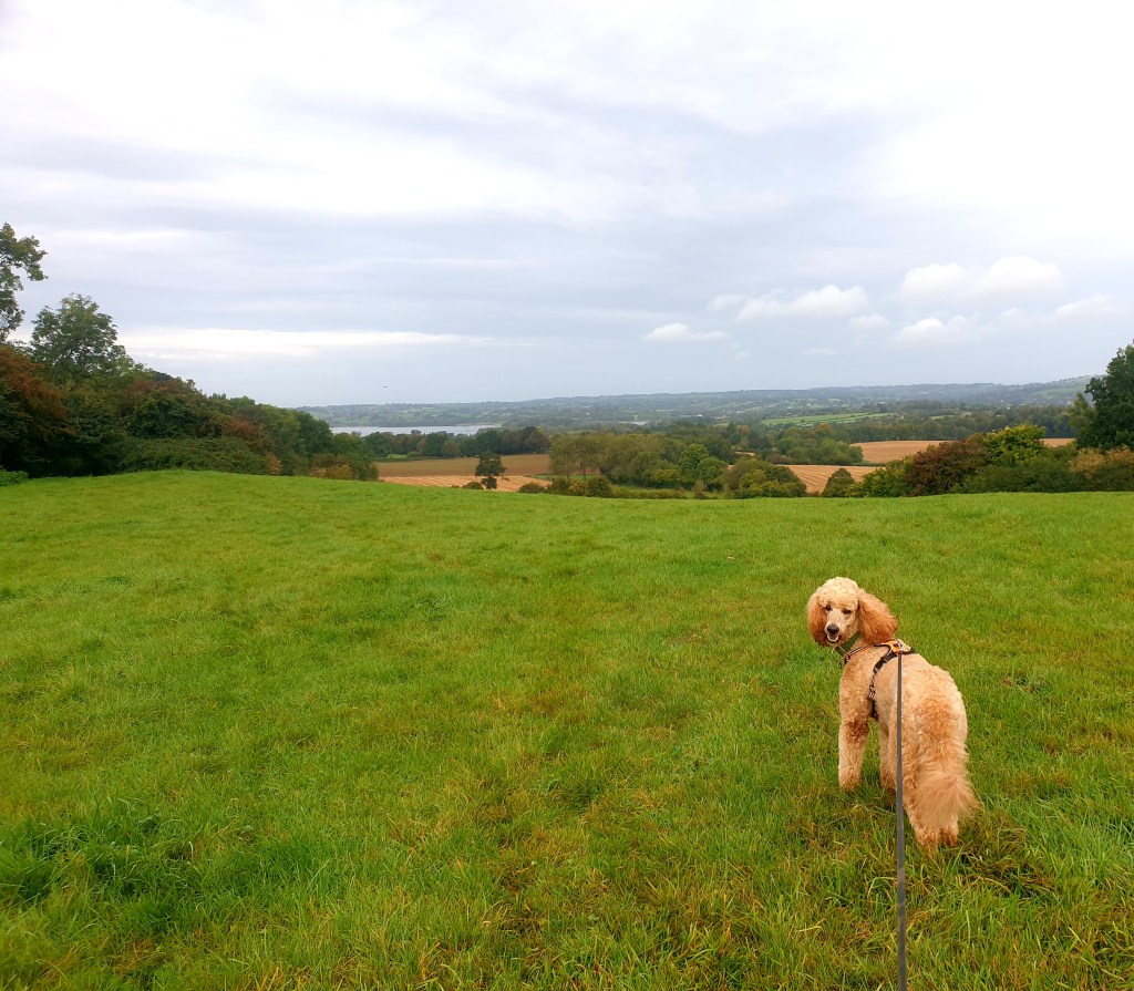 The South Eastern arm of this loop passes through some lovely woodland – both planted and natural broadleaf woods, offering Eric the ability to get all prey driven and prick up her ears. She pelts after squirrels, never sees them dart up a tree, runs right past the last place she saw them and continues to look in all the wrong places. That duck hunting gene is fast diminishing.
