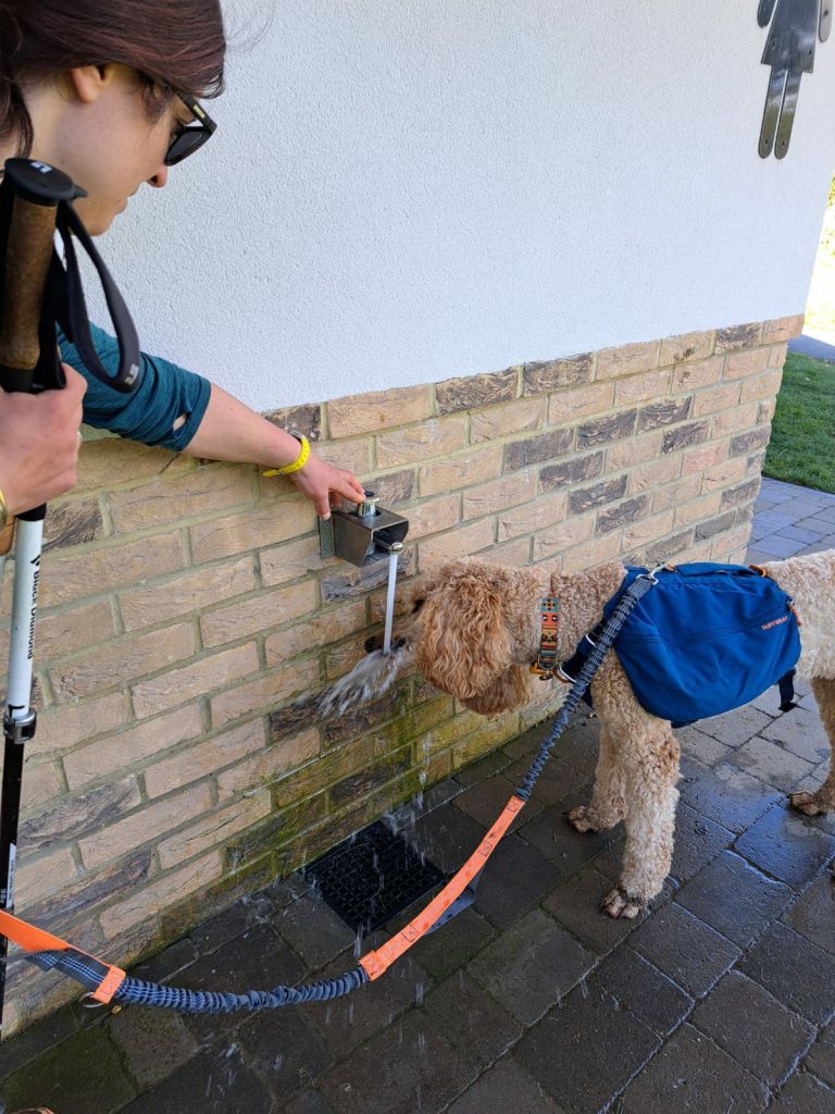 The day was heating up. Eric made use of small streams, public taps and puddle water, which all seemed to arrive at regular,  welcone intervals.