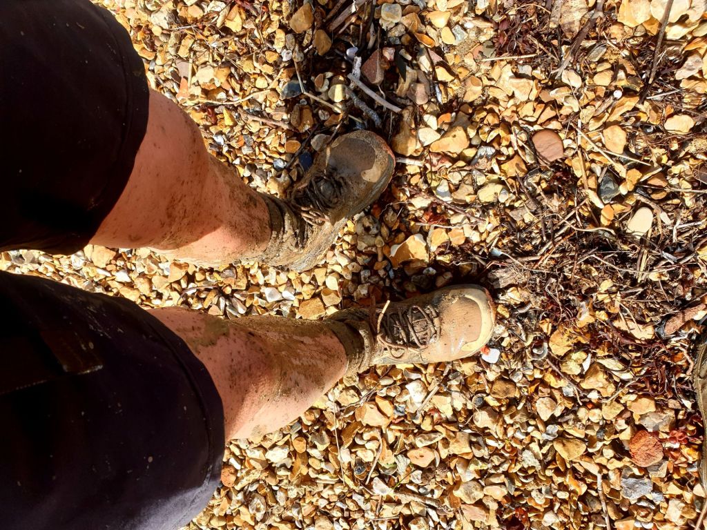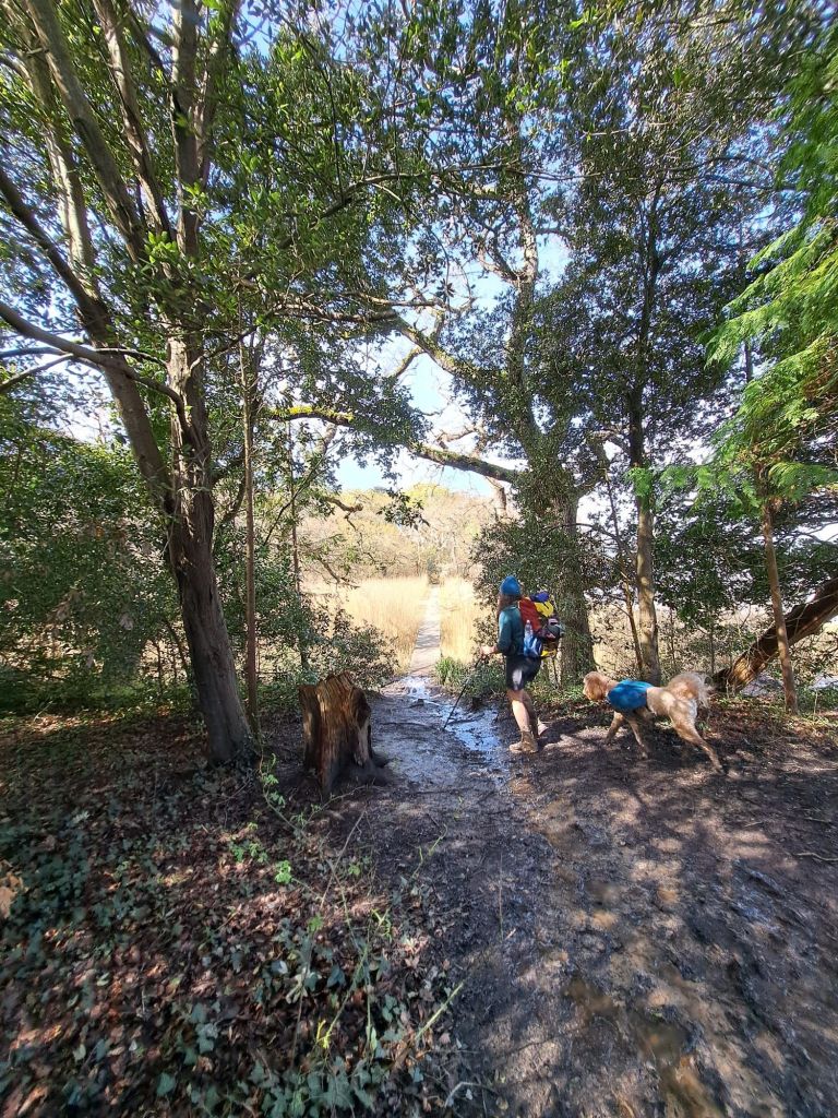 From here we soon peeled off the road onto extremely muddy paths. This all became easier once you: a) stopped caring about dry feet and b) moved in the relaxed fashion of a 4 year old. The path wound into the woods out onto heathland and soon we rejoined the ocean.