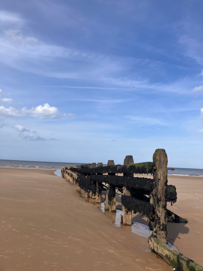 The beach walk from Cromer was wild and felt similar to the Jurassic coast. The cliffs became enormous. The sun was still shining and Eric still was in beach ball mode.