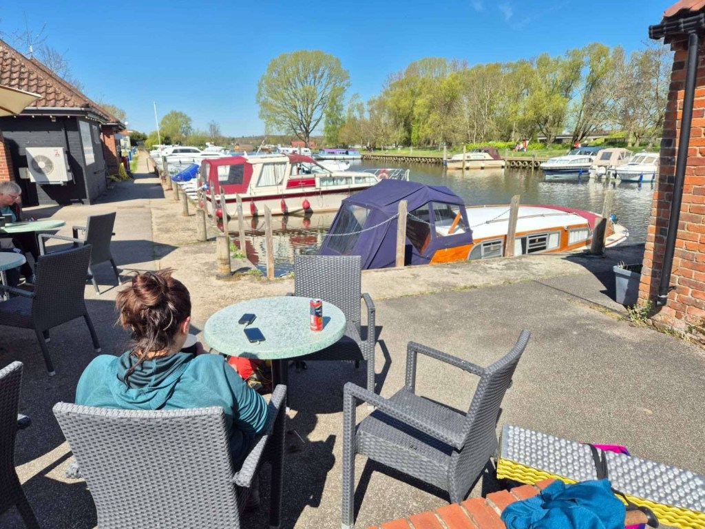 We soon came to the town of Beccles where at the marina we were able to buy Eric a massive sausage while we sat and had coffees. She, along with us was looking less than her best, poor ragged little angel.