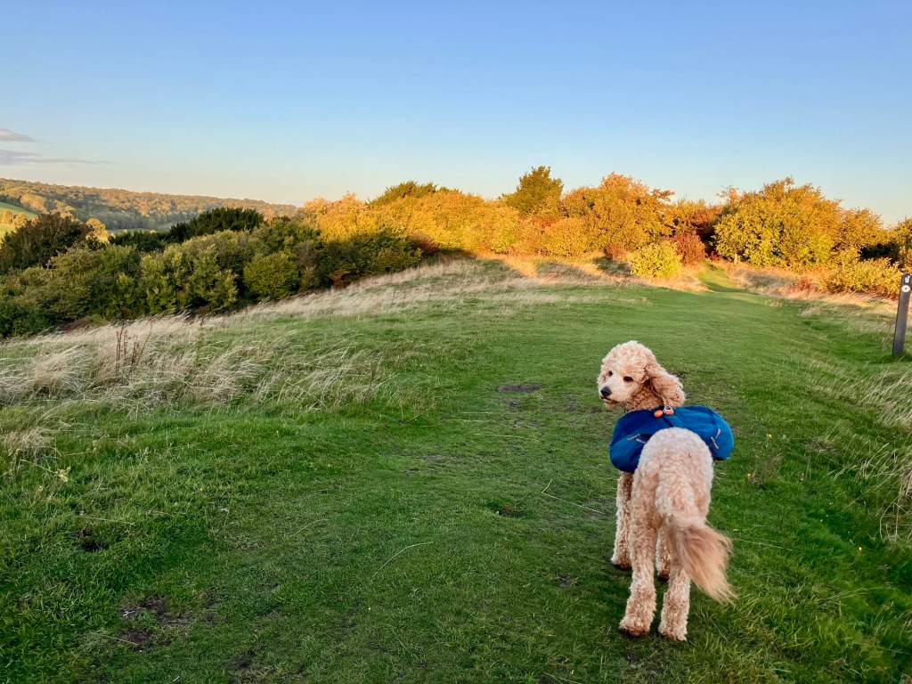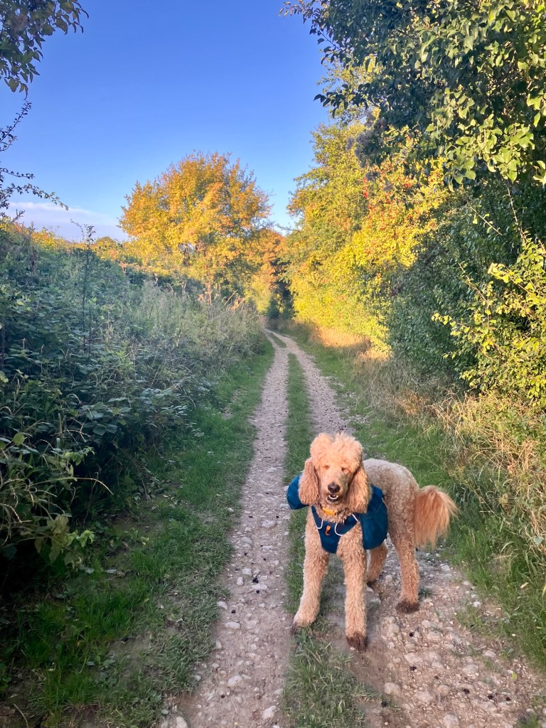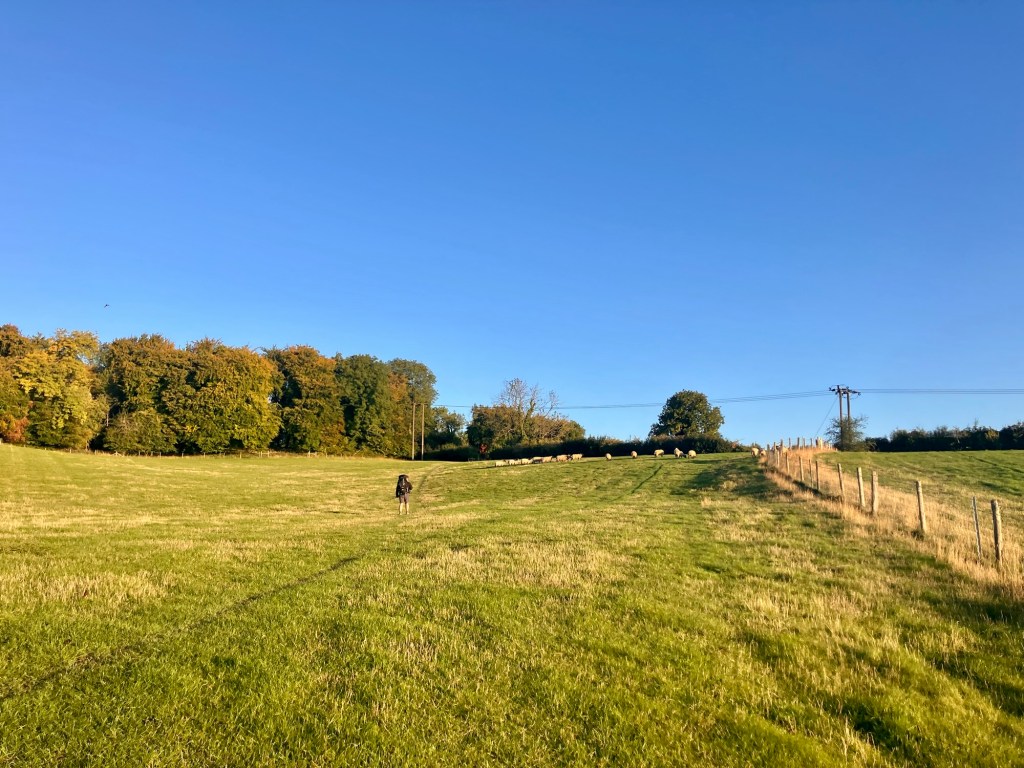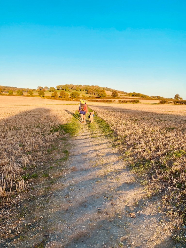 We walked through fresh, sheep filled fields in the early light, ambled down tracks and driveways and gorped at houses we each agreed we’d happily live in, we met some folk also walking the trail but heading in the opposite direction, and we were frequently told that Winnie had great hair and was indeed very clever in carrying all her things.