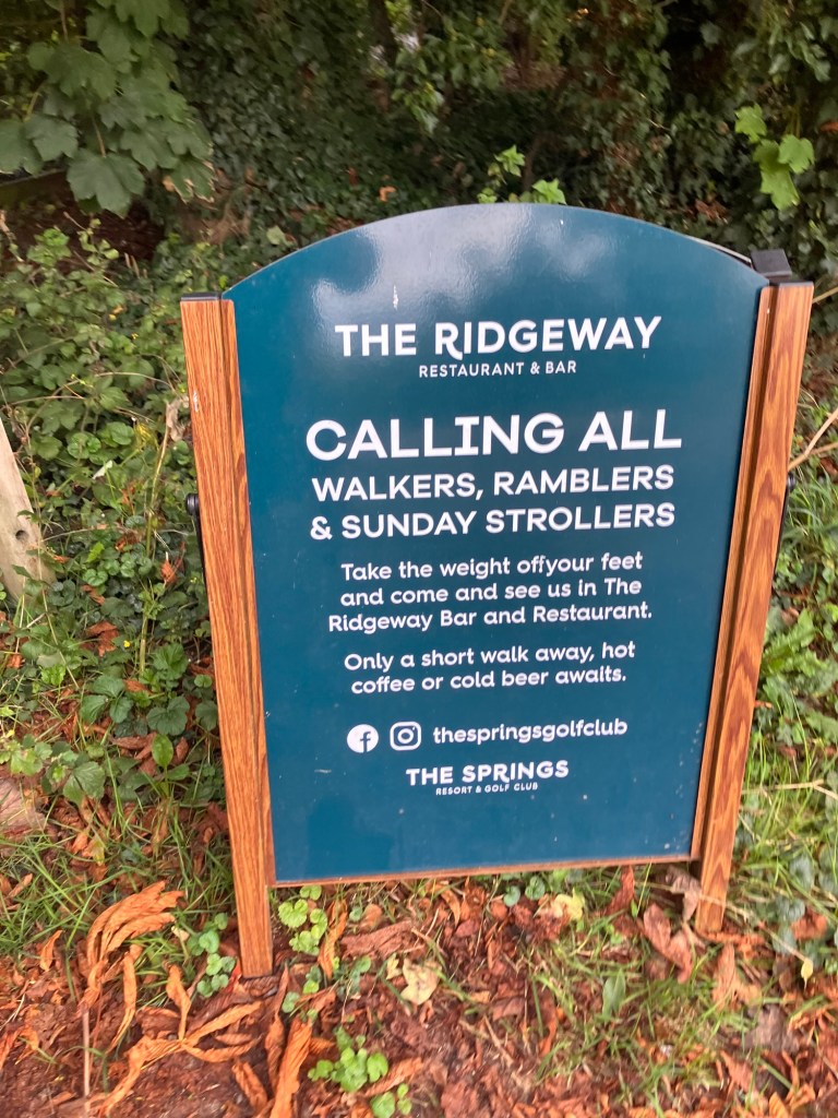 We felt this was a sign not to be messed with. It was 4:30pm we’d walked 20 miles and we were 2 miles from our destination; which was a church porch in a nearby village. The weather was to be bad overnight and so we aimed for this as a shelter and hoped it would be available and accessible. Naturally setting a bed up in the porch church is better done later in the day lest we become obsticles for worship, so we took the opportunity to use up some time in the bar of the golf club. Woe is us.