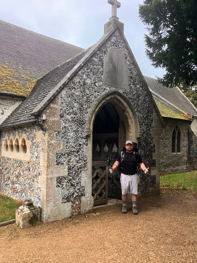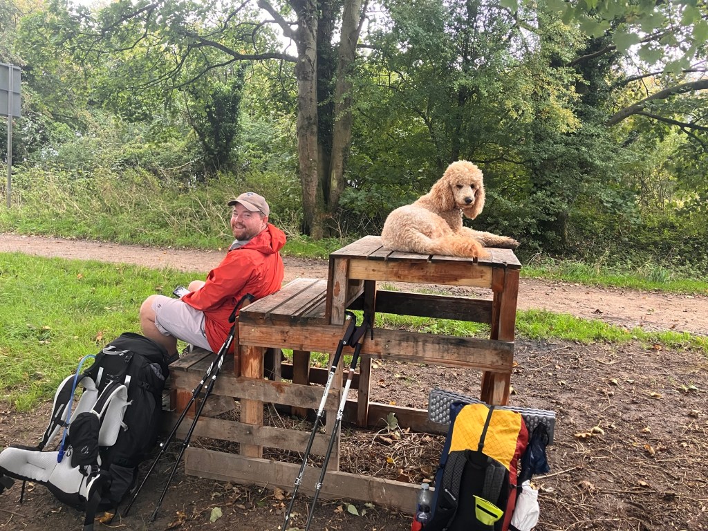 …..And also these two guys we met late morning today. They are walking the ridgeway, in the opposite direction, facilitated by their good lady wives escorting them to and from an air b&b. Lovely. We exchanged tails of what’s to come, with us ensuring the little cupcakes and offer of tea in Nuffield church was not missed by them – while they ensured we knew where every single bench was from the east up to this point. I zoned out just for a moment, only to zone back in at the mention of a ‘pork van’ further up the trail.