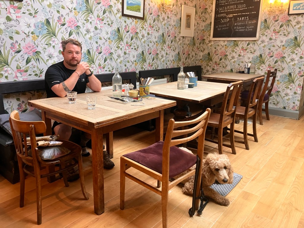 We walked back through town the way we came and stopped at Pierreponts cafe where I’d previously agreed that in exchange for them holding a package for me, we would disburse some sponds at their establishment by way of breakfast. Which naturally we were going to do anyway.