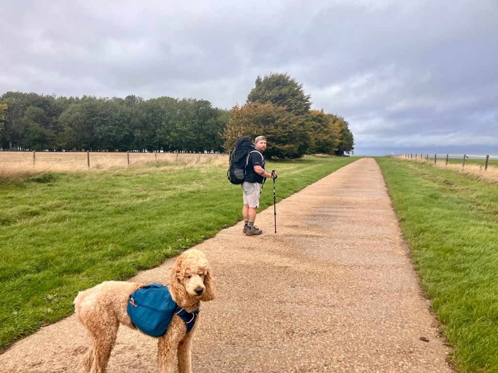 For the last 5,000 years (at least) people have used the ridgeway. It provided a reliable route for traders from the Dorest coast to as far as the wash in Norfolk. It generally follows higher ground to offer a dry route with a commanding view; lest you were set upon by vagabonds. It boasts the Bronze Age’s star attraction, Avebury ring, Uffington white horse and the hill forts of the Iron Age. Invading Saxons, Angles and Jutes used it as well as the Vikings (when the invaders became the invadees). The road was frequented by drovers moving like stock to market before the enclosure acts of 1750. Now, many of the tracks remain used by farm machinery and walkers, like Kai Winnie and me….