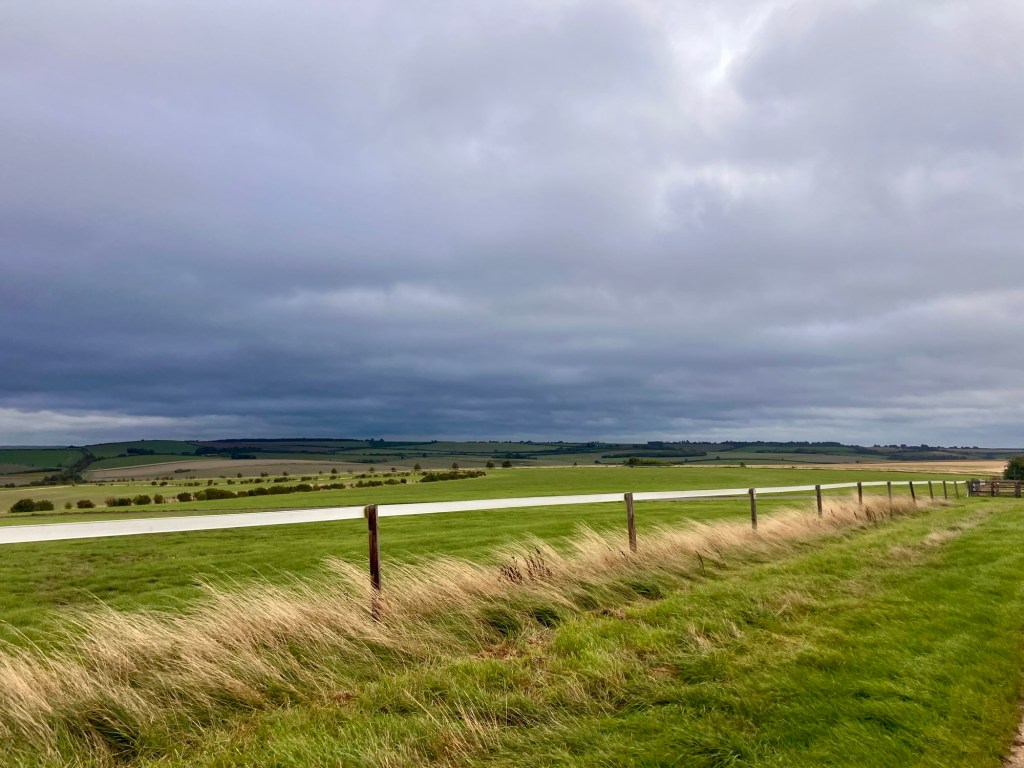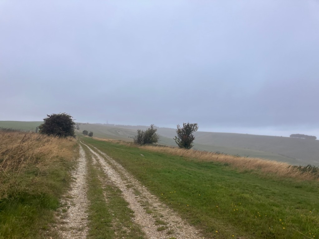 The day got bleaker and bleaker, wetter and windier. The track was firmer than tarmac. 5,000 years of ancient compacted chalk. All those giants walking on it carrying heavy stones.