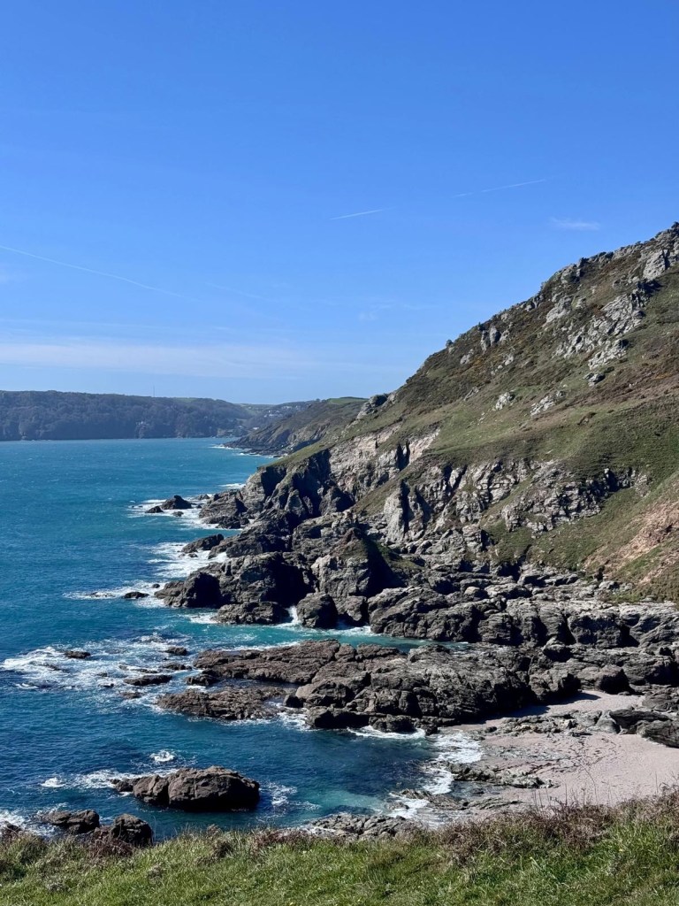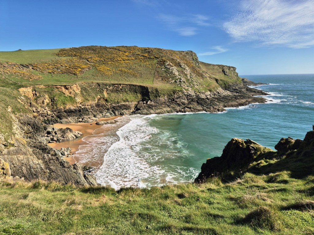 The scenery felt completely different- yesterday’s rolling grass covered mounds had given way to mountainous feeling jagged peaks and rocky outcrops. This was by far my favourite section of the coastal path I’ve walked to date.