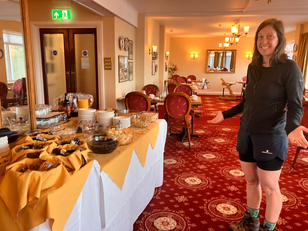 We ate excellent food and managed to get a lift the three (off-trail miles) from our accommodation. Here there was a washing machine, which everyone we meet on trail tomorrow should be grateful for. We snuggled up with some wine and blankets and watched a nice film about a serial killer.