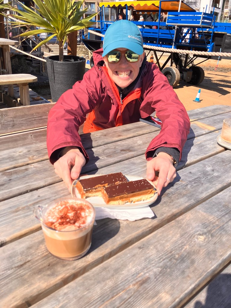 We stopped for coffee at Bo’s Beach Cafe and Groany queued for at least three hours before joining us on the benches overlooking the beach, delivering coffee and cake.