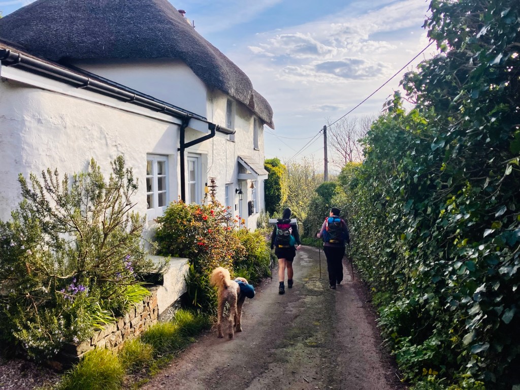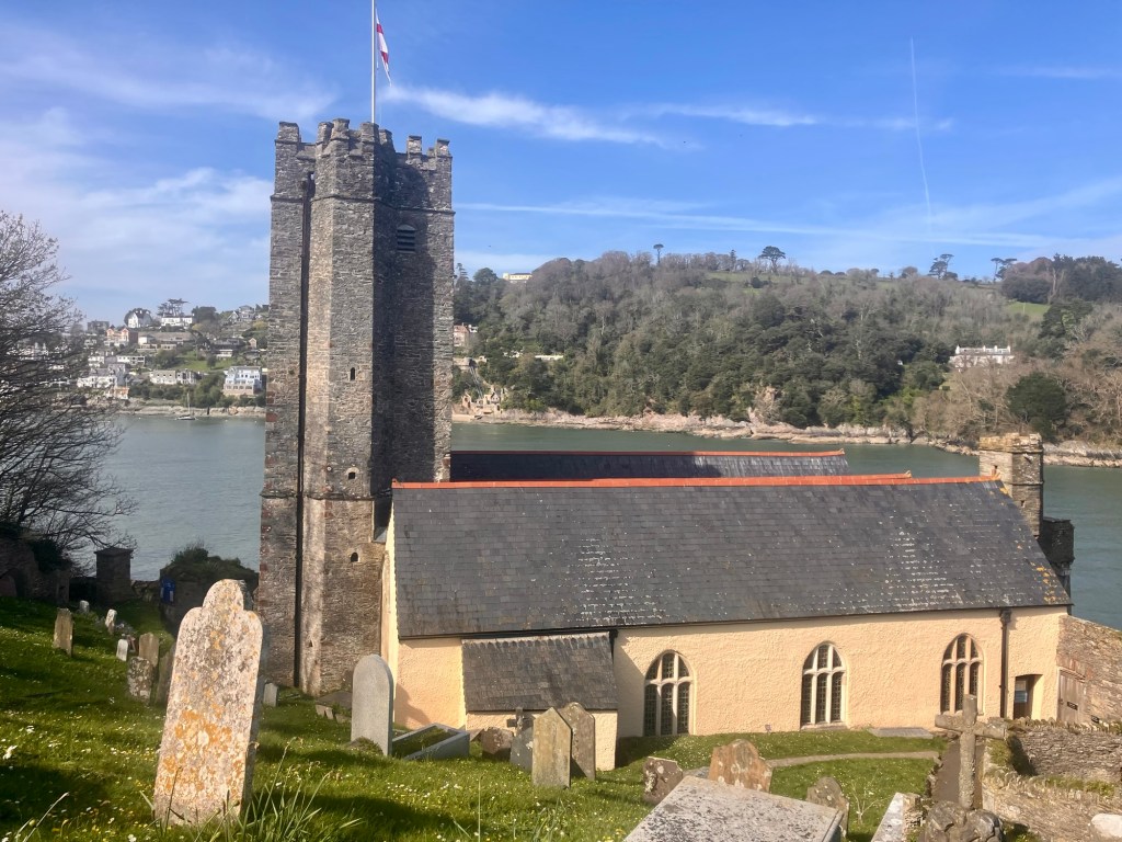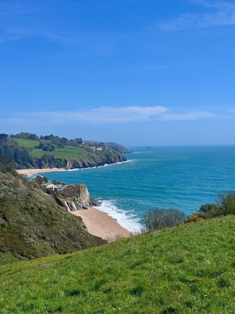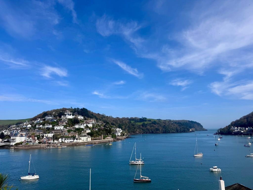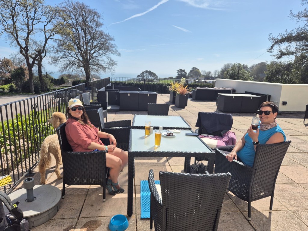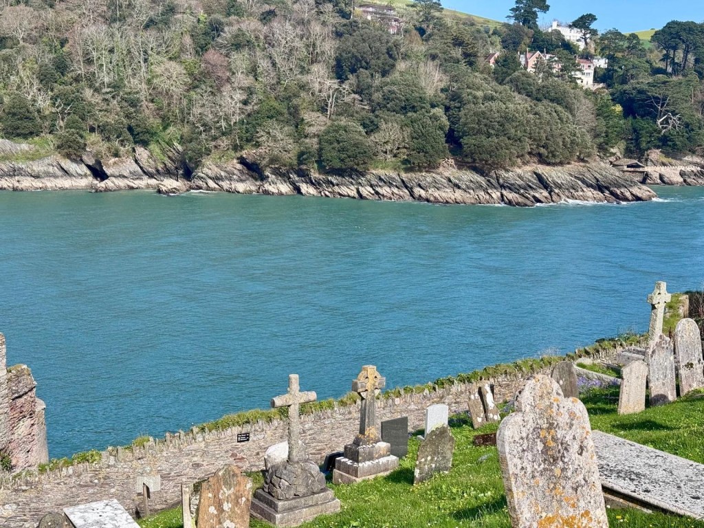 We skipped the greasy smelling cafe at Blackpool sands and climbed the hill into Stoke Fleming. The pub was closed so we headed to the village shop where the extremely nice lady told us if we wanted lunch, we’d be better off going to the hotel up the road where there is a glorious patio with a view to sit out on, a pool, a bar and a nice lunch menu, “not that I want to do myself out of any business mind” .