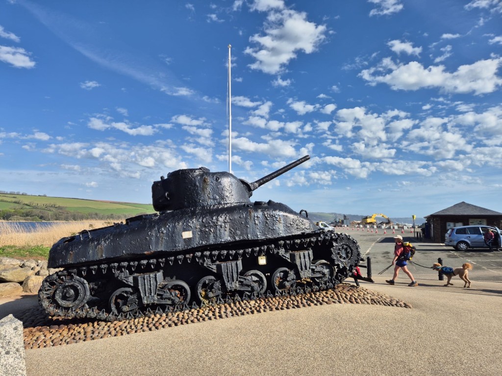 It was also the site of ‘Operation Tiger’ a large-scale Allied rehearsal for the D-Day, conducted in April 1944 here at Slapton Sands. During the exercise, German E-boats unexpectedly attacked a convoy of U.S. landing ships, sinking several and causing the deaths of around 700 servicemen—more than some actual D-Day beaches. The disaster was kept secret at the time to preserve the invasion plans. In the years since, Ken Small, a local hotelier of the 1980’s made huge efforts to recover and commemorate the event, included raising a submerged Sherman tank from the seabed 3/4 of a mile off shore, which now stands as a memorial to those who lost their lives.