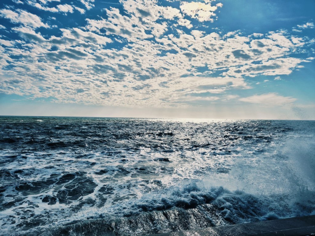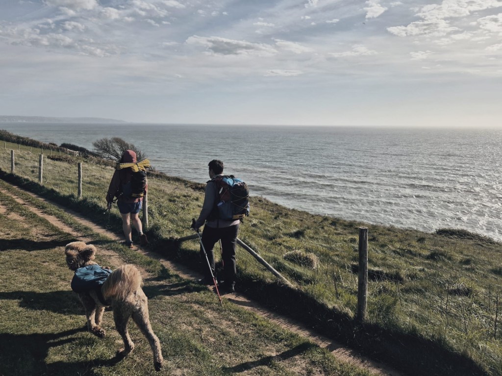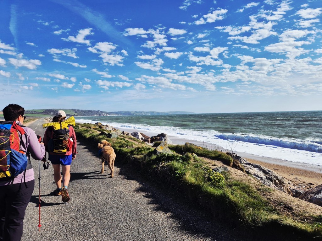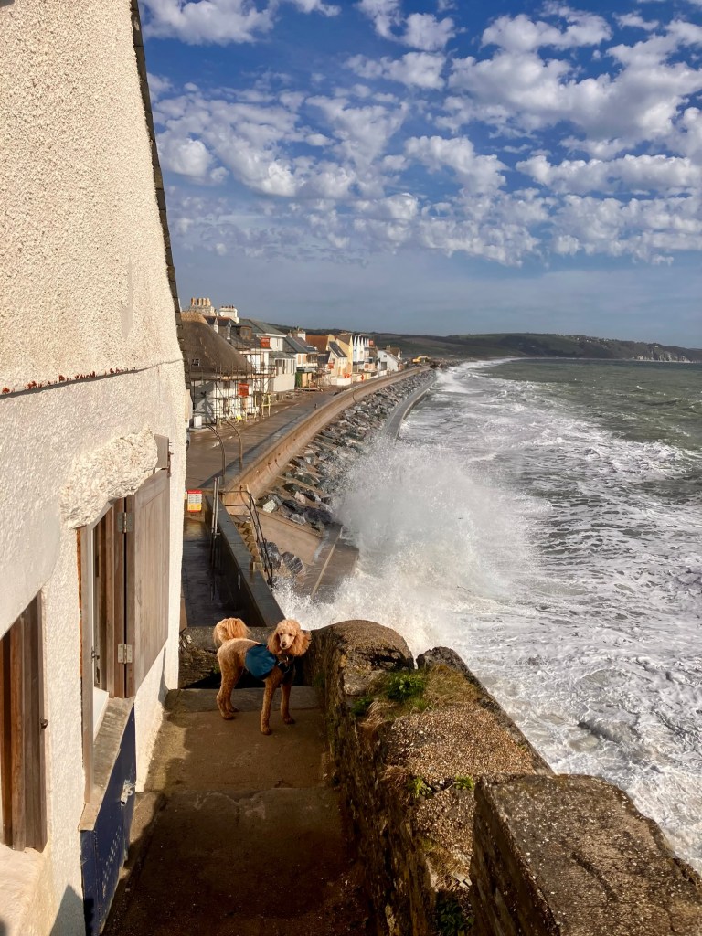 We descended into Torcross which felt apocalyptic, storm damage saw most of the dwellings (of which there were few) on the seafront boarded up. The waves were crashing mere meters from us up and over the sea defence and practically knocking at the doors of these homes. The cafe and pub were shut and it was a bit wild and sad.