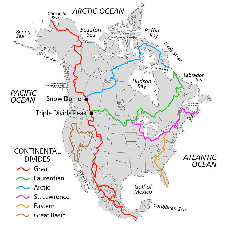 It receives its name from the ‘Great Continental Divide’ which separates the watershed draining into the Pacific from those draining into the Atlantic Ocean.